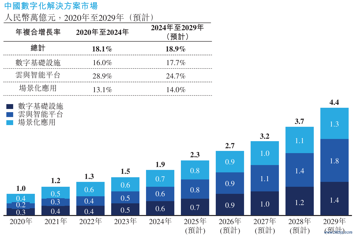 凭证弗若斯特沙利文数据,跟着政府对数字经济的抓续详确和政策支抓的不休深切,以及各行业在AI窜改的时期波澜中对数字化转型需求的日益增长,数字化处分有斟酌市集预期将领路增长。瞻望到2029年,国内久久婷婷精品人双人中国数字化处分有斟酌市集将达东谈主民币4.4万亿元,2024年至2029年时间的年复合增长率将达到18.9%。